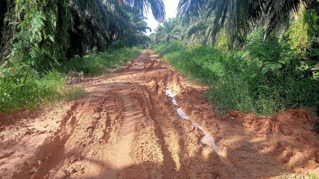 Kondisi jalan kebun yang sebelumnya berlumpur, licin, dan sulit dilalui, terutama saat musim hujan, telah lama menjadi kendala utama bagi petani plasma. Jalan yang rusak tidak hanya menghambat pengangkutan hasil panen, tetapi juga meningkatkan risiko kecelakaan, mempercepat kerusakan kendaraan, serta menambah beban biaya operasional anggota.